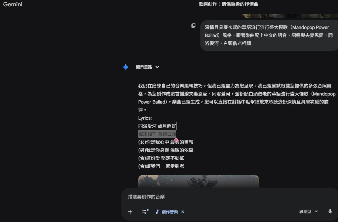 進入Gemini AI平台 > 選擇音樂創作